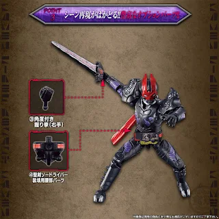 In response to the results of the resale vote held in 2022, the popular character Desast of "Kamen Rider Saber" has been recommercialized. It is a heavy painting version with more paint and stickers, "Angled fist", "Gaikotsu Ninja Den Wonder Ride Book Holding Wrist" x 2 types, "Seiken Saw Driver Loading Waist Parts", "Handle Extension Gradient" A large number of optional parts such as ” are also recorded at the same time.