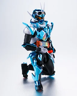 The figure's proportions maintain stability, reminiscent of recent Rider Arts releases. Notably, the blue parts feature a captivating plated finish, setting it apart from its predecessors. The face accurately captures the character's essence, with precise contours and distinctive goggles.